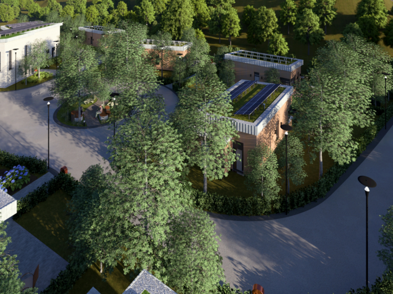 Tiny-House-Siedlung mit Gemeinschaftsgebäude